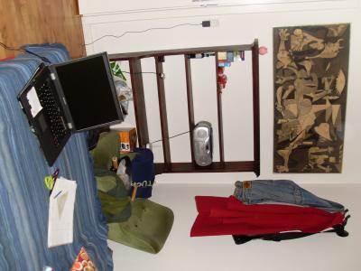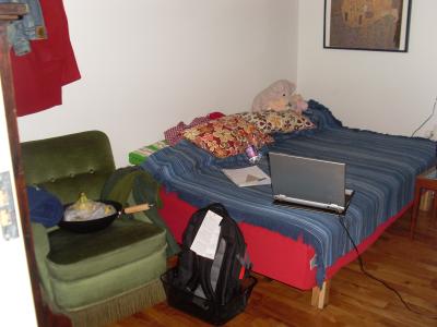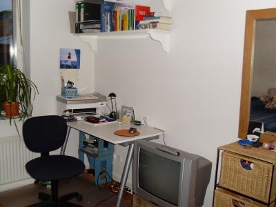 Und schließlich der Schreibtisch, an dem ich kaum arbeite, weil's viel gemütlicher ist, auf dem Bett zu arbeiten.