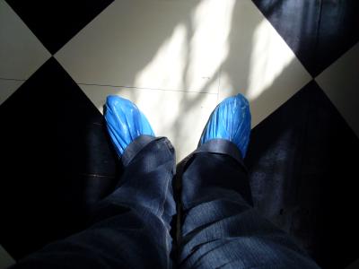 Deshalb müssen die Besucher auchMüllsäcke Fußbodenschoner über die Schuhe ziehen.